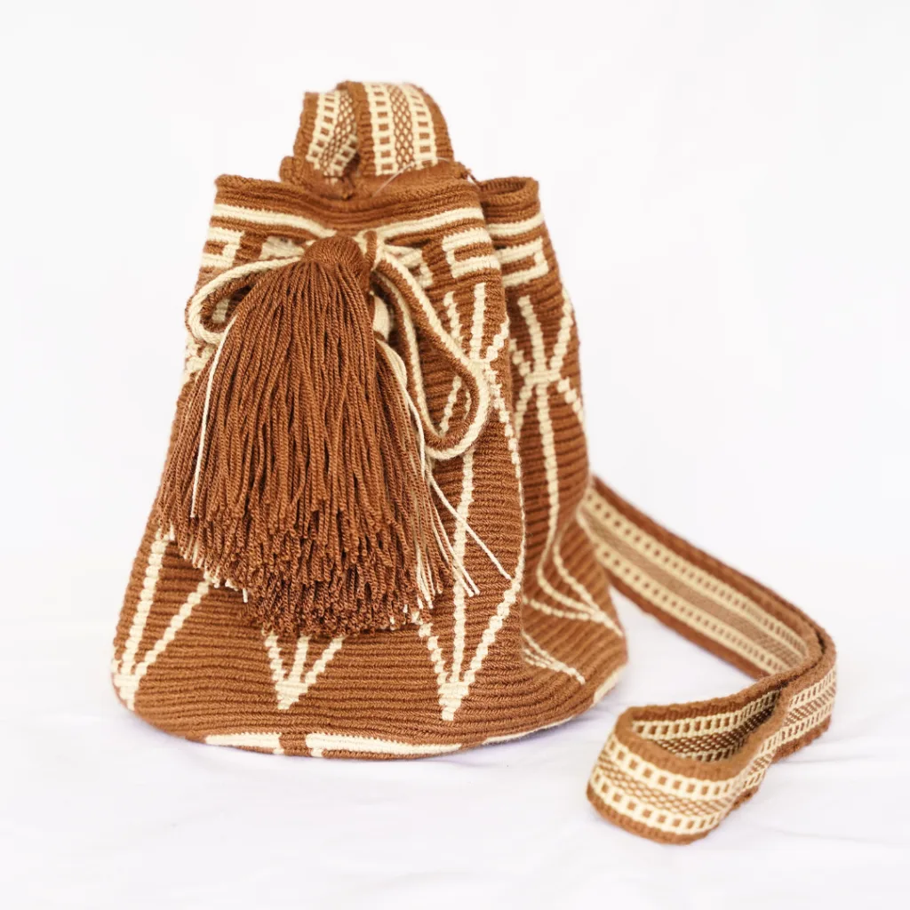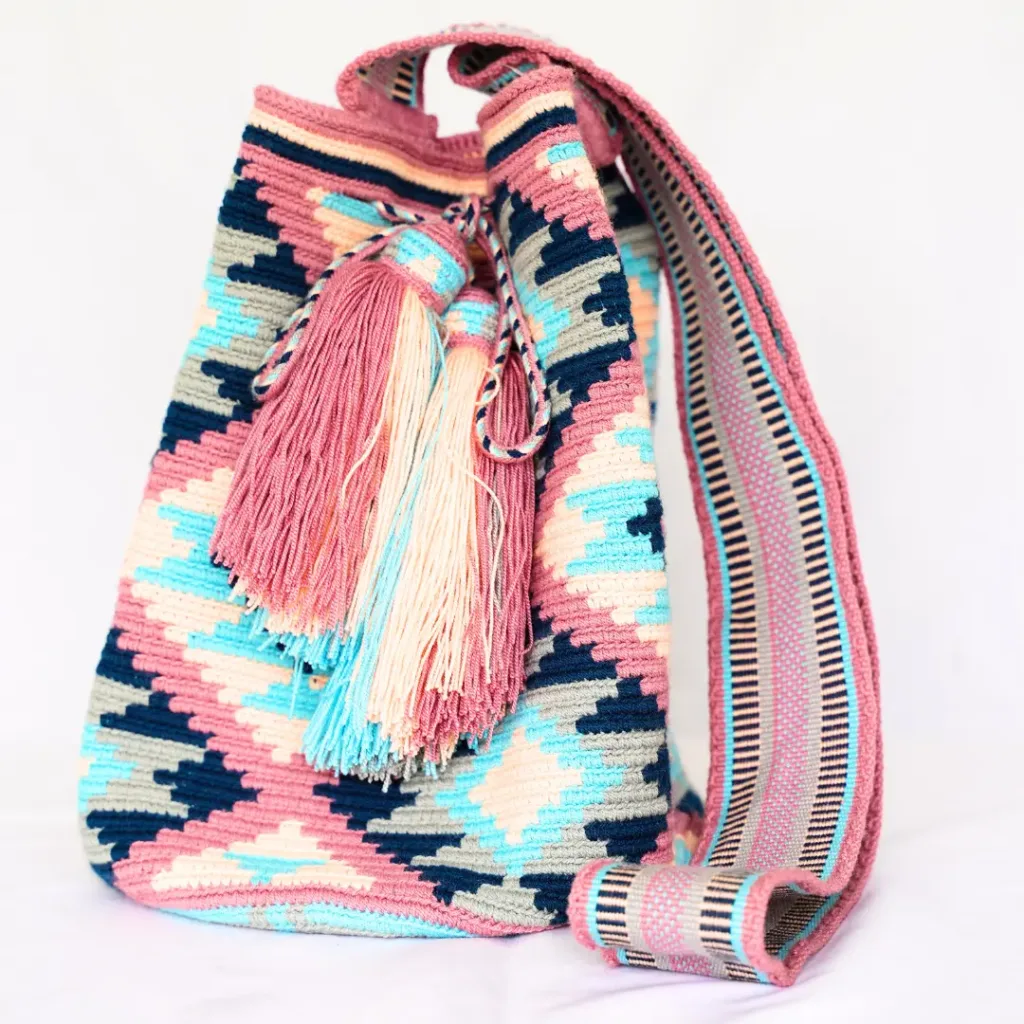 コロンビアの伝統的な手編みバッグ「モチーラ」。