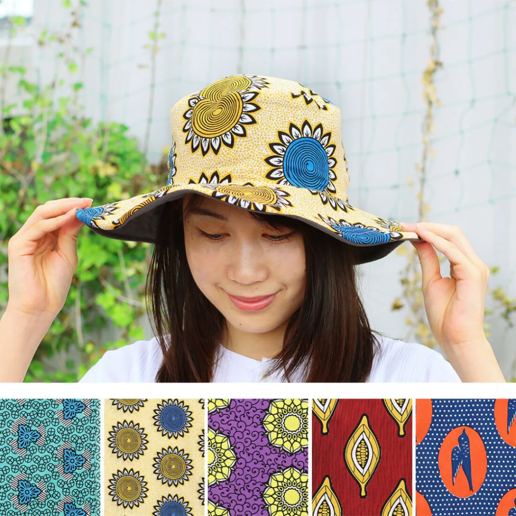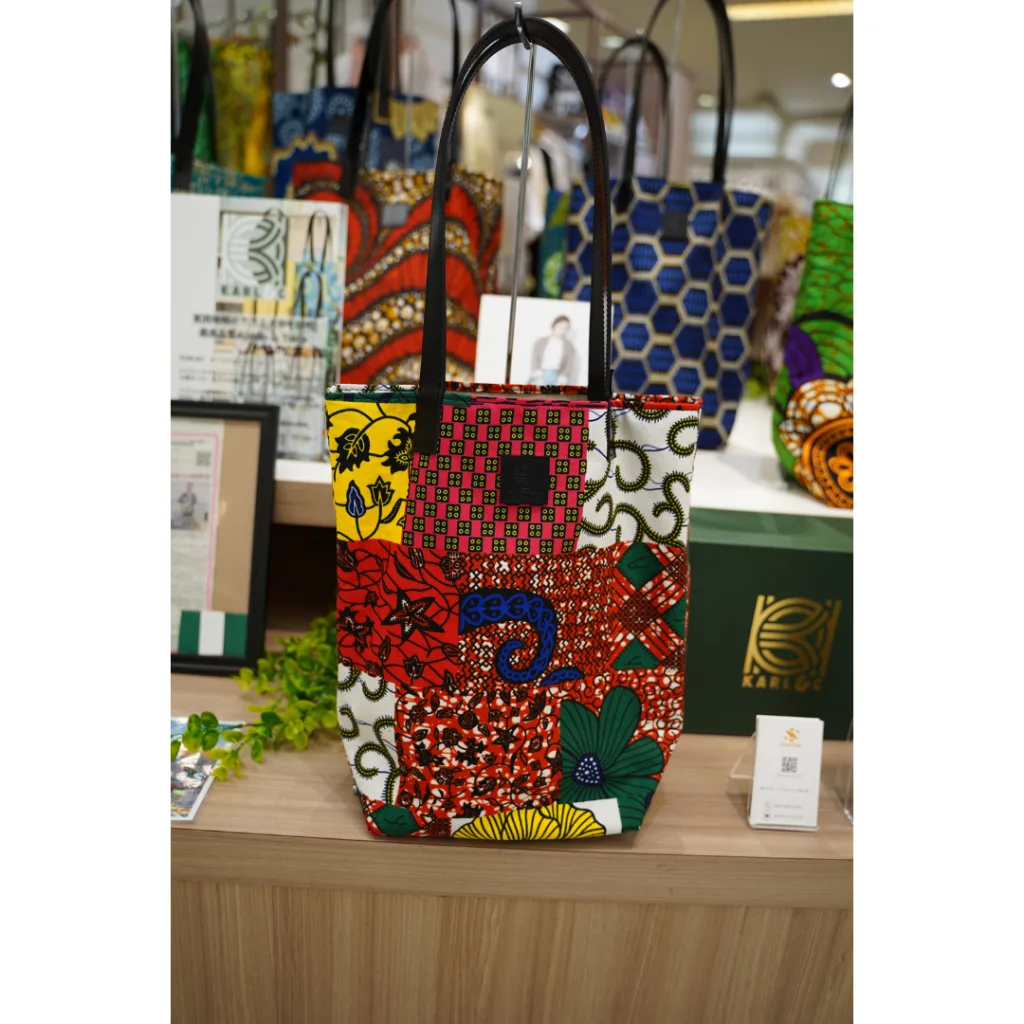 アフリカ布等を用いたアパレルアイテム。