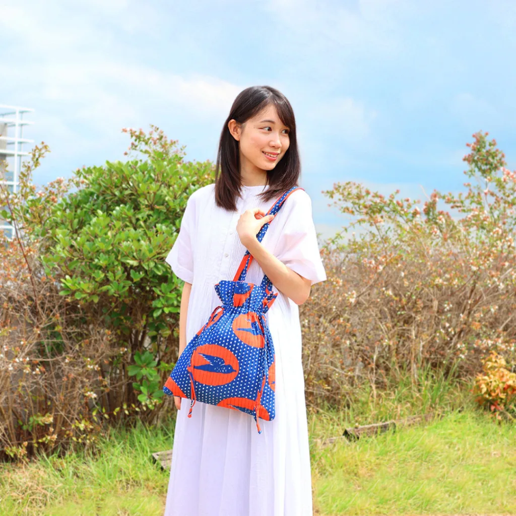 表はアフリカンプリント、裏はシックな無地。気分で使い分けられるリバーシブルバッグ