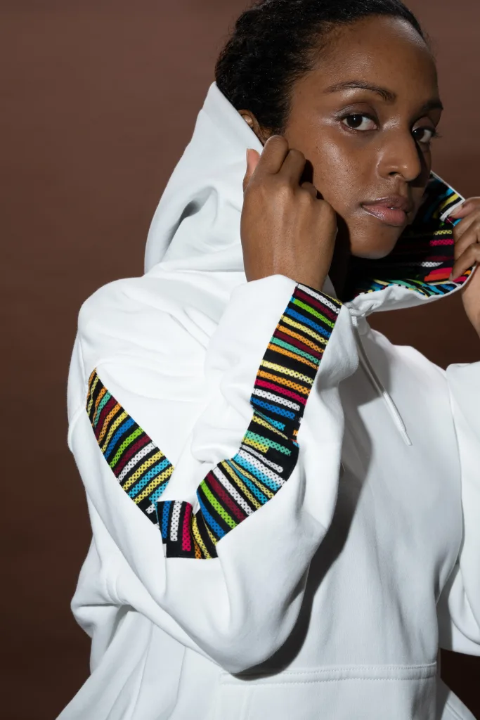 ケニア最大のスラム・キベラ出身のデザイナーDavid Ochiengが手がけるブランド。ビヨンセの「Black Is King」への参加でも注目を集め、Vogue、CNN、AFPなど海外メディアにも取り上げられています。売上の20%がキベラの学校に寄付されるほか、聴覚障がいを持つ女性たちの雇用創出にも貢献。まだ肌寒い時に大活躍のパーカーを用意。白とグレーの2色展開です。(9,900円)